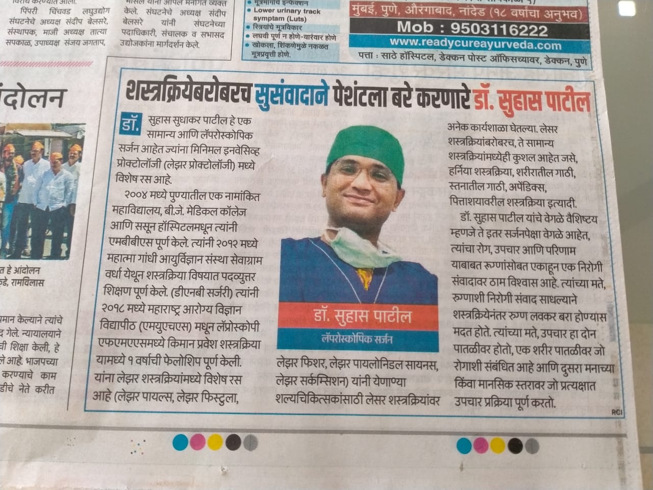 Dr Suhas Sudhakar Patil is a general and laparoscopic surgeon with special interest in minimal invasive Proctology ( Laser Proctology) . He completed his MBBS from reputed college, B.J.Medical College and Sassoon hospitals in Pune in 2004. He completed his post graduation in Surgery in 2012 from Mahatma Gandhi Institute of Medical Sciences Sewagram Wardha.( DNB Surgery) He also completed his 1 year fellowship in Minimal access Surgery In Laparoscopy FMAS from Maharashtra University of Health Science (MUHS) in 2018 He has special interest in laser surgeries ( Laser piles, laser fistula, laser fissure, laser pilonidal sinus , laser circumcision) He conducted many workshops on laser surgeries for upcoming surgeons. Along with laser surgeries, he is also well skilled in general surgeries like Hernia surgery , body tumours, breast lumps, appendix , gall stone surgeries etc