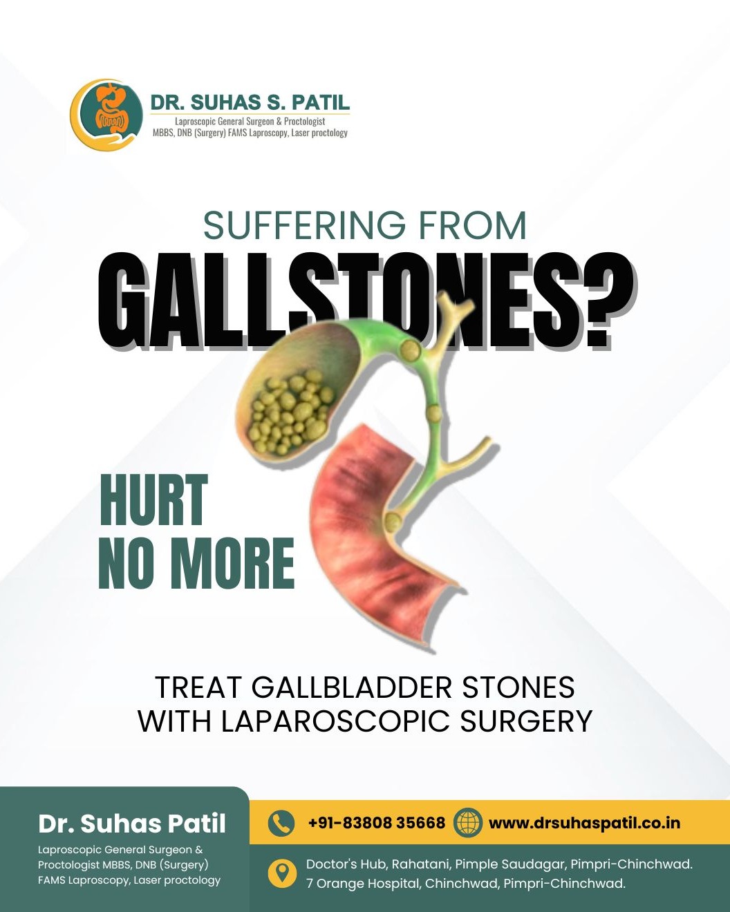 Suffering from gallstones? 😣 Don’t let the pain take over your life! Gallstones are hardened deposits that can cause severe abdominal pain, nausea, and discomfort after meals. But the good news is modern laparoscopic surgery offers a safe, effective, and minimally invasive solution! 💫 With tiny incisions, quick recovery, and minimal scars, you can get back to your routine in no time. Say goodbye to traditional painful methods and choose advanced laparoscopic gallbladder surgery for a healthier, pain free life. Trust expert care, modern technology, and safe hands to treat your gallbladder stones effectively. If you’re looking for the Best Hospital for gallstone in Chinchwad, trust expert care with the Best laser gallstone surgeon in PCMC. Our gallstone doctor in PCMC and gallstone specialist in Pimple Gurav provide advanced, painless, and quick recovery treatment options with precision and care for lasting relief from gallstone pain.